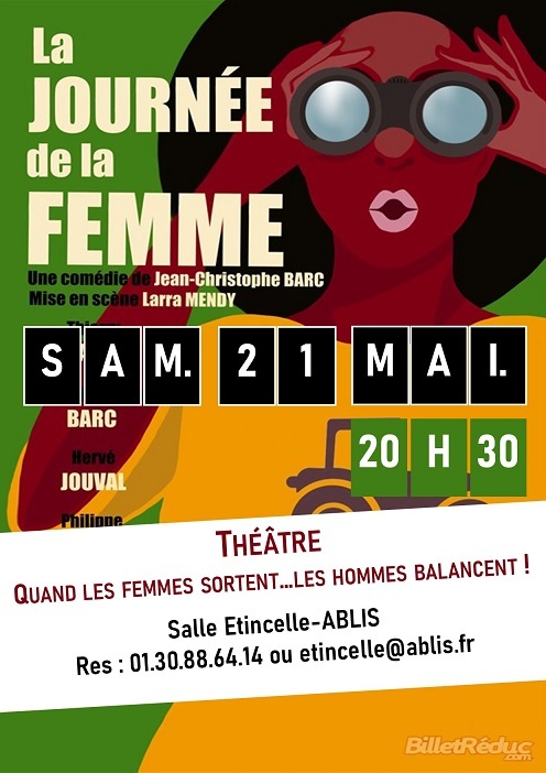 Pour clôturer cette belle saison , l étincelle d Ablis accueillera la compagnie des petites vadrouilles dans une pièce de théâtre à la fois drôle et piquante "La journée de la femme" samedi 21 mai à 20h30